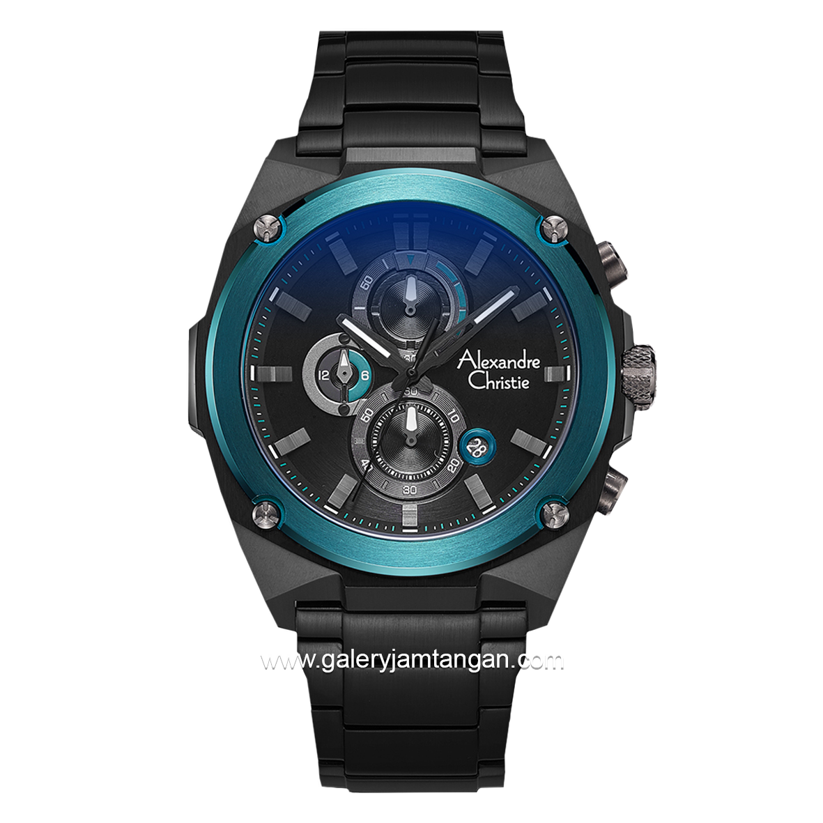 Alexandre Christie AC 6655 MC Black Ring Blue Chronograph Stainless Steel + Free Strap Cadangan