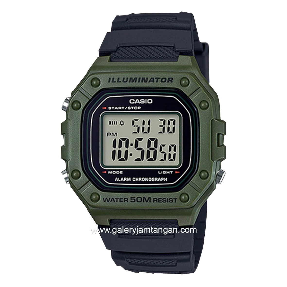 CASIO W-218H-3AVDF Black Green Resin Strap