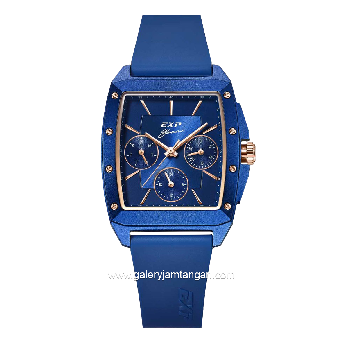 Style : Sporty~ Case Diameter : 30 mm~ Dial : Blue~ Lug Width : 18 mm~ Movement : Quartz~ Case Material : Stainless Steel~ Luminous : ~ Strap Material : Rubber~ Case Back : Stainless Steel~ Clasp : Pin Buckle~ Feature : Multifunction~Inside the Box: