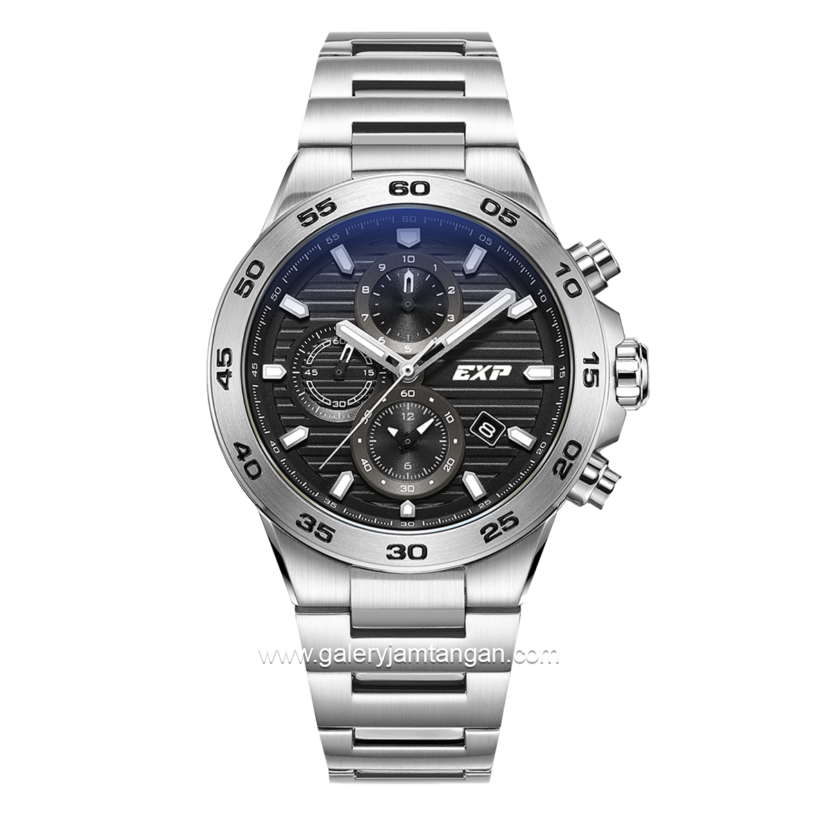Style : Fashion~ Case Diameter : 42 mm~ Dial : Black~ Lug Width : ~ Movement : Quartz~ Case Material : Stainless Steel~ Luminous : ~ Strap Material : Stainless Steel~ Case Back : Stainless Steel~ Clasp : Buckle~ Feature : Chronograph~Inside the Box: