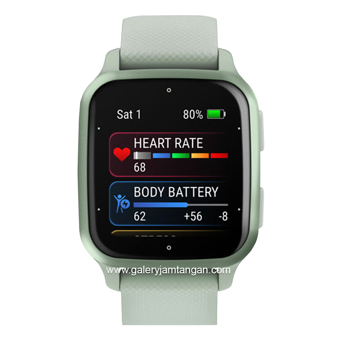 Venu Sq 2 Cool Mint/Mettalic Mint Comes with a durable Corning® Gorilla® Glass 3 lens to a lightweight aluminum frame and a comfortable silicone watch band, this smartwatch was created to keep up with your lifestyle. It has a battery life of up to 11 days in smartwatch mode and 26 hours in GPS mode. This smart watch is also equipped with more than 25 GPS and sports apps. This watch also has a Garmin coach training plan.